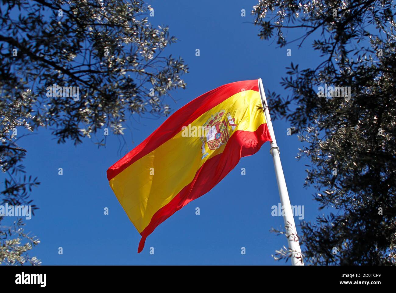 A Spanish Flag Flies In Madrid S Plaza Colon February 15 2012 The European Union Is Likely To Take Action Against Spain S Newly Installed Government By May For Delaying Austerity Measures Ahead Of