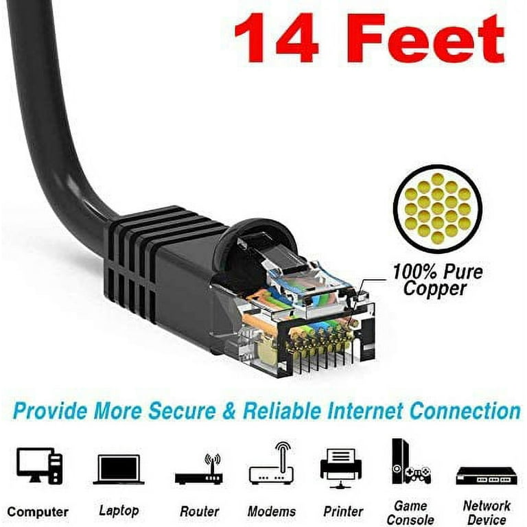 14 Ft 14ft Cat6 Ethernet Network Patch Cable Rj45 Black Walmart Com